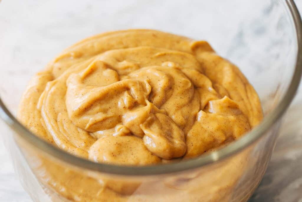 - Once smooth, whisk in the baking soda, baking powder, salt, pepper, pumpkin pie spice, and cinnamon.
