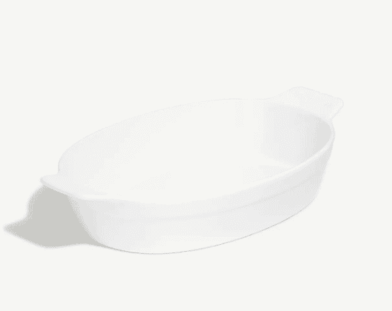 - Preheat the oven to 350F and grease an oval Au Gratin dish or anything that holds 2.5 quarts – see notes for different pan options.